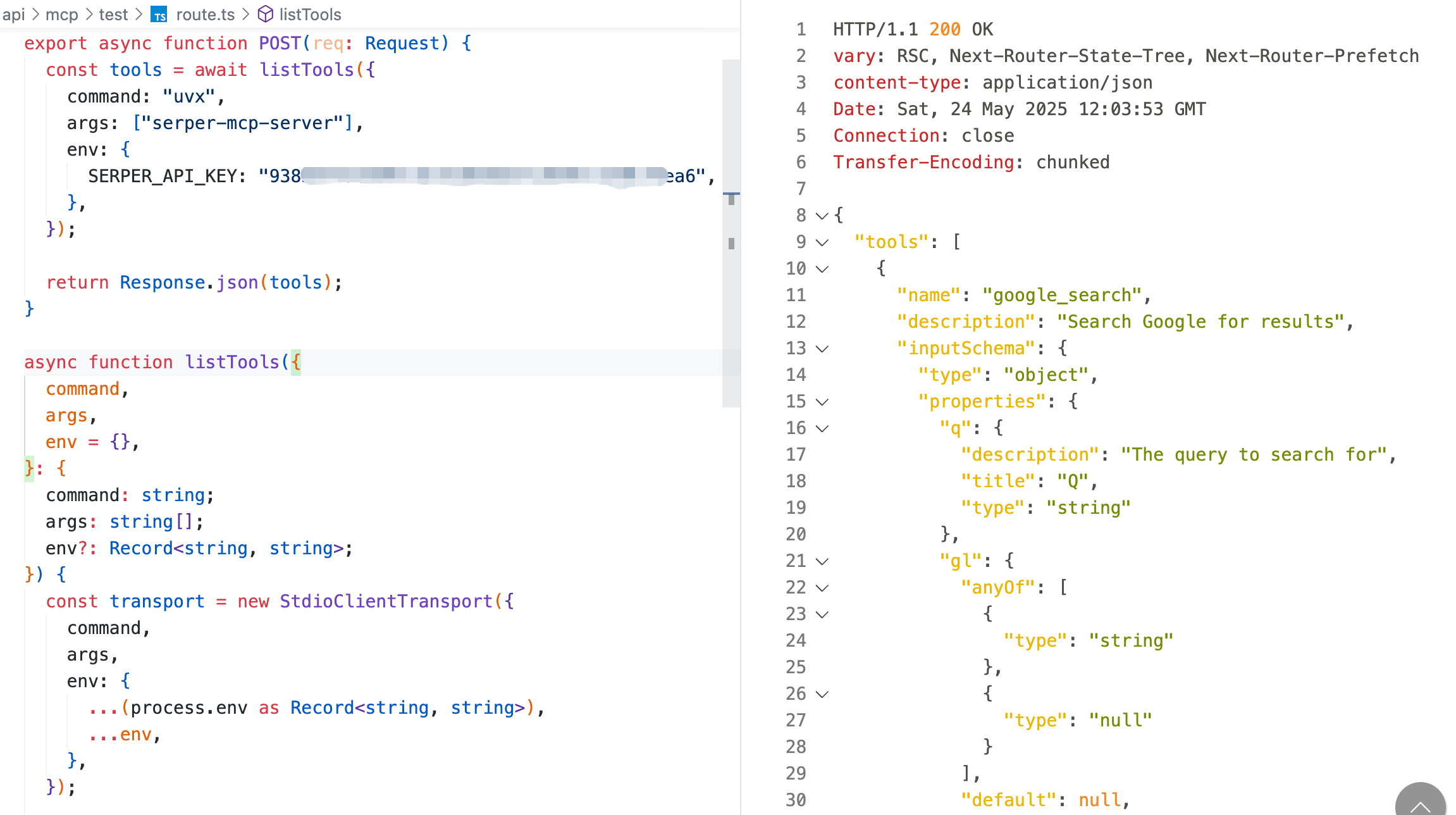 图 4-15 调试 serper-mcp 工具列表