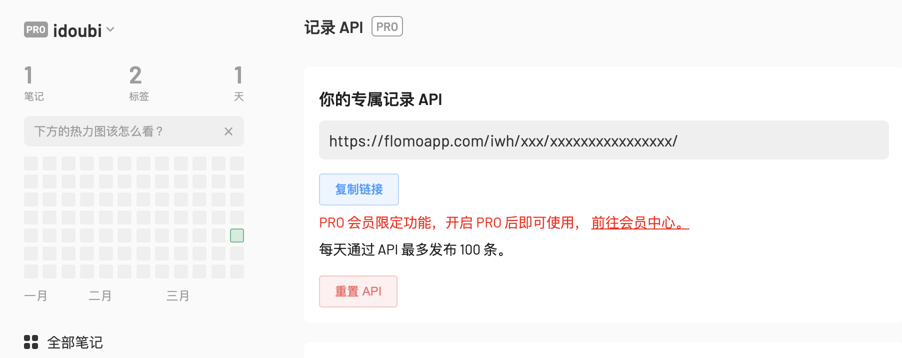 升级成 Pro 会员之后,复制你的专属记录 API 链接。