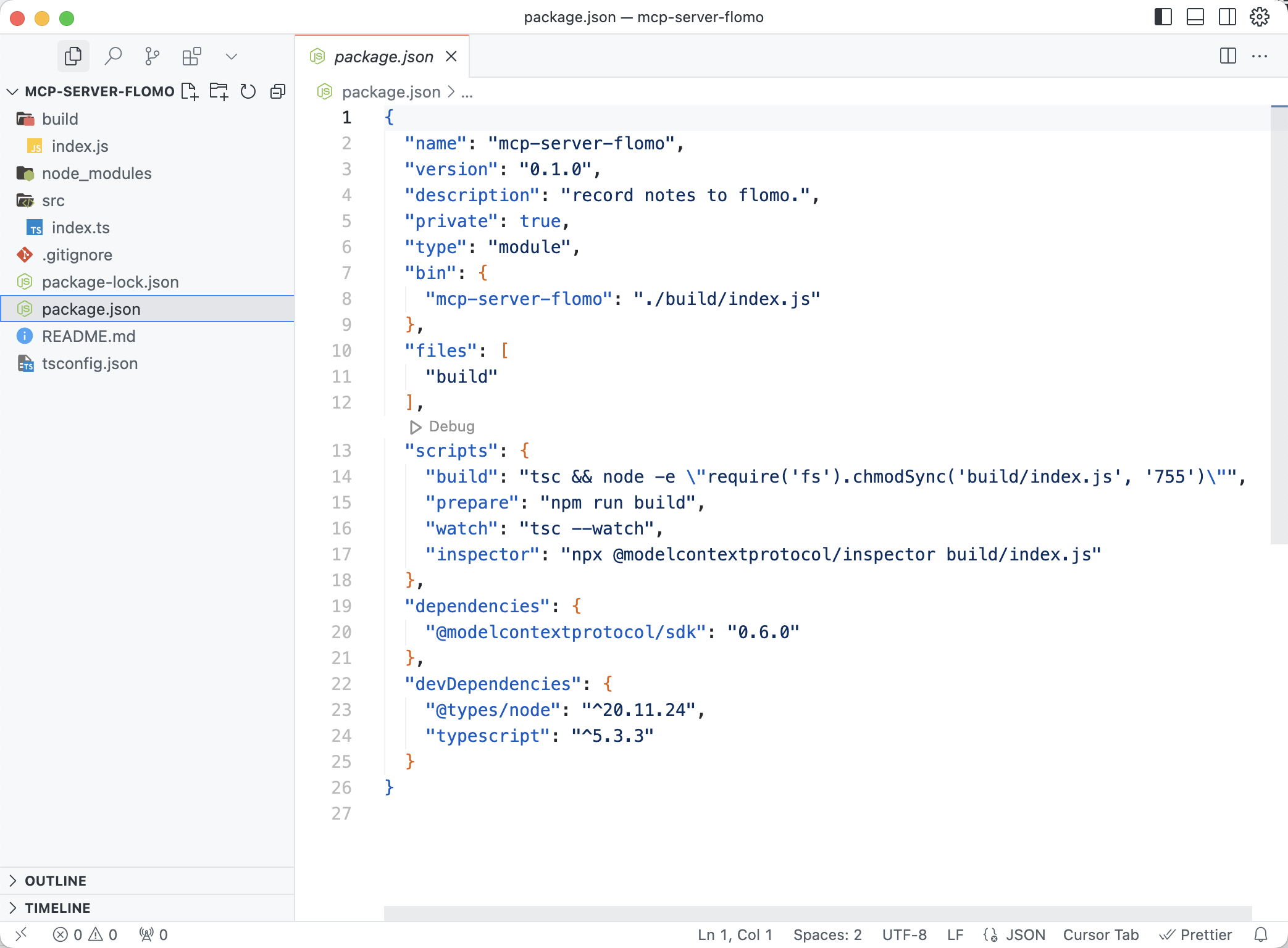cd mcp-server-flomonpm install用代码编辑器打开创建好的 MCP 服务器,可以看到默认生成的项目代码结构: