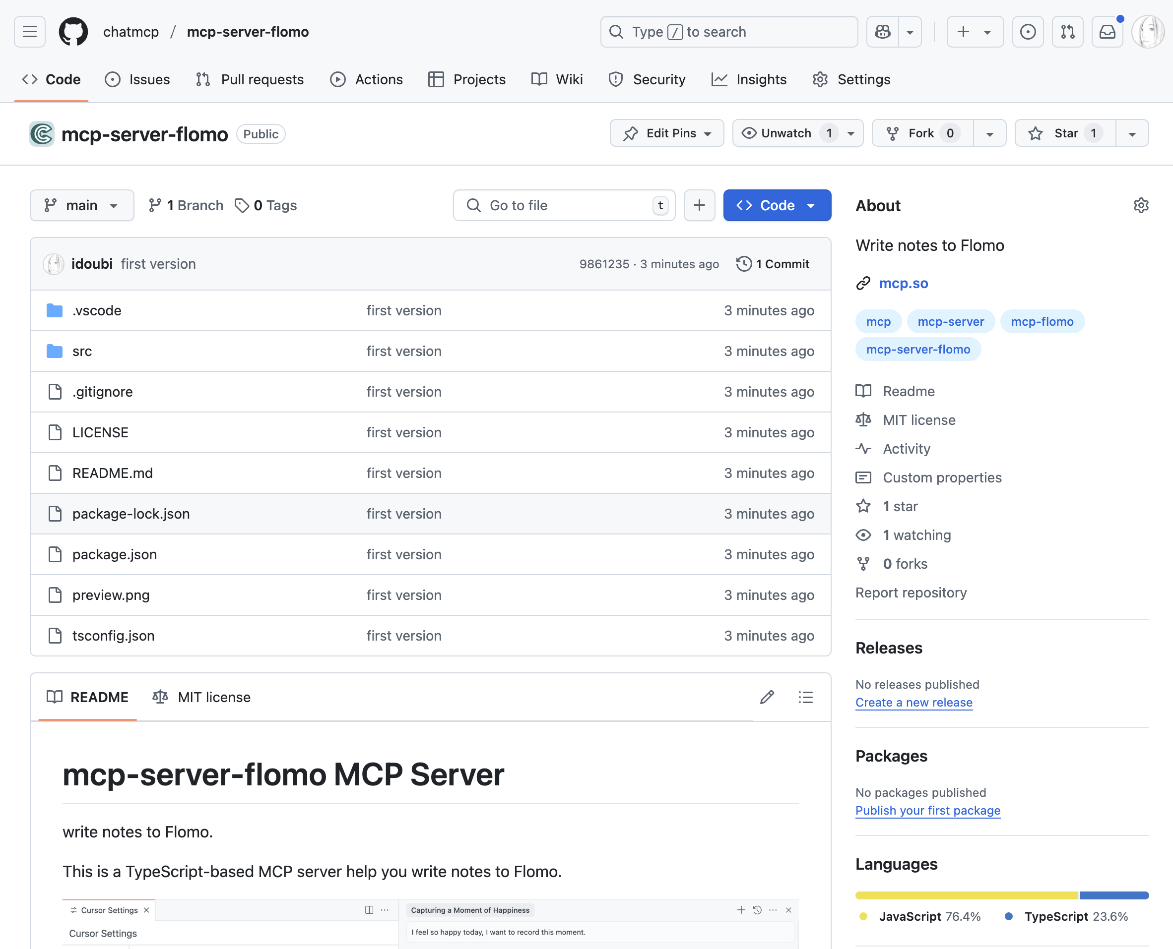 我们可以选择把新开发的 mcp-server-flomo 代码发布到 Github,开源给全世界的人使用。