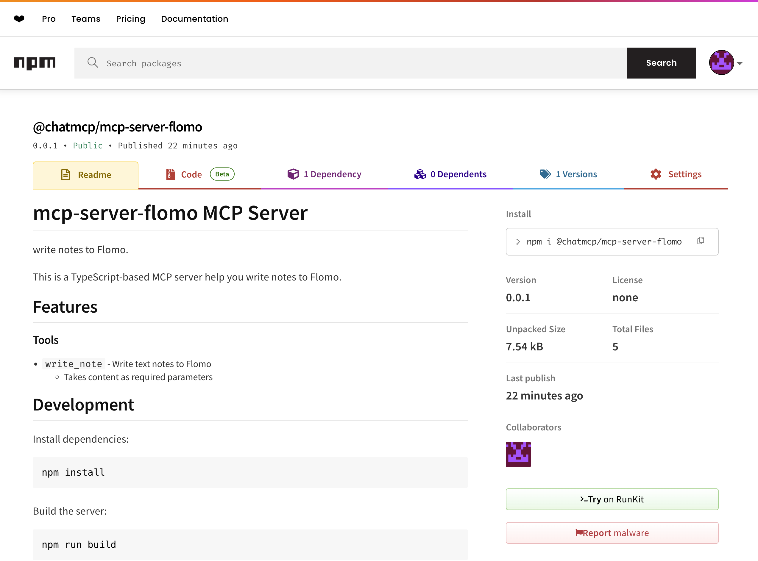 我们需要把 mcp-server-flomo 作为一个 npm 包,发布到 npm 应用市场