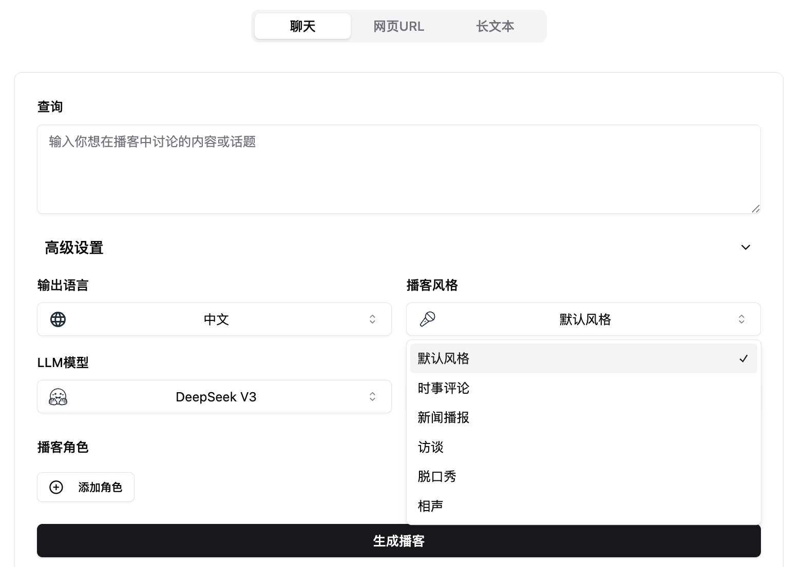 通过网页 URL 生成播客的步骤,跟通过话题生成播客的步骤基本类似。